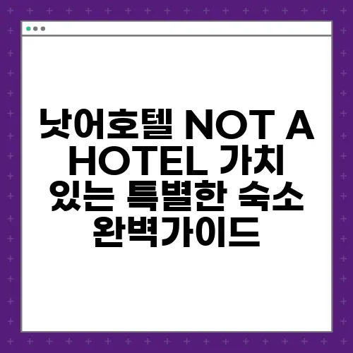 낫어호텔 NOT A HOTEL은 어떤 곳인가요?
