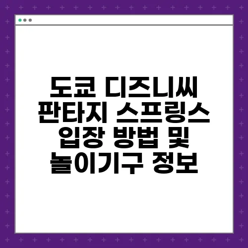 도쿄 디즈니씨 판타지 스프링스에 어떻게 입장하나요?
