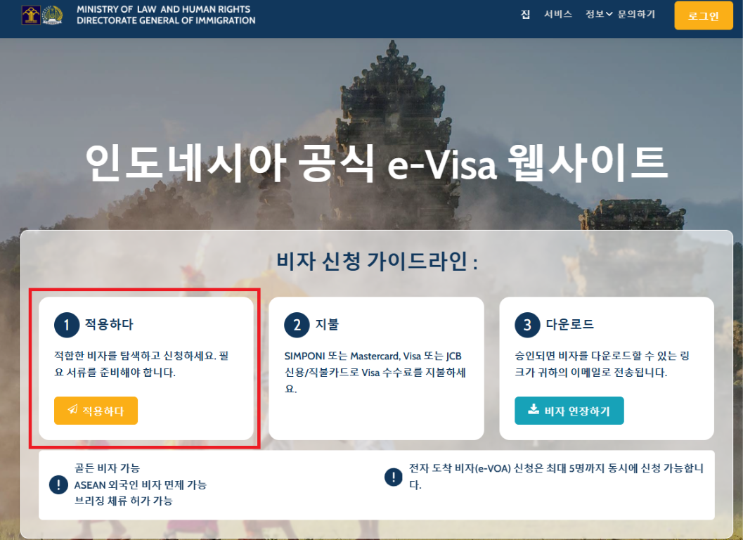 발리 E-Visa 신청은 인도네시아 이민국 공식 웹사이트에서 이루어지며, 몇 가지 간단한 단계로 완료할 수 있습니다.