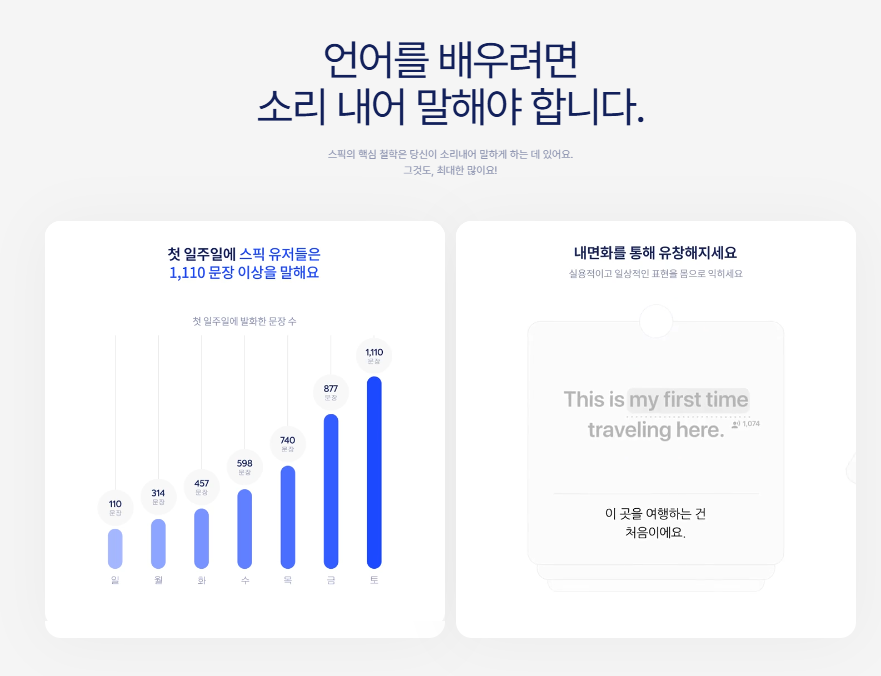 스픽은 단순히 영어를 배우는 앱이 아니라, 학습자의 영어 말하기 능력을 실제 생활에서 적용 가능하도록 돕는 최고의 파트너입니다.