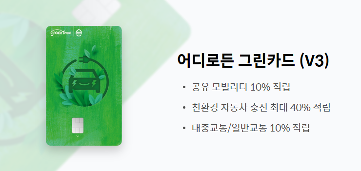 어디로든 그린카드는 환경을 생각하는 라이프스타일을 지원하면서도 다양한 적립 혜택을 제공하는 카드입니다. 전기차/수소차 충전, 대중교통, 공유 모빌리티 이용 시 혜택을 받을 수 있어 실용성과 경제성을 모두 갖춘 카드로 주목받고 있습니다. 이번 포스팅에서는 어디로든 그린카드의 주요 혜택, 실적 조건, 발급방법에 대해 상세히 알아보겠습니다.