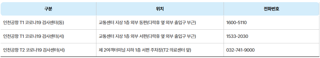 - 공항 검사센터: 공항에서의 검사 결과는 약 4시간 후에 나옵니다.