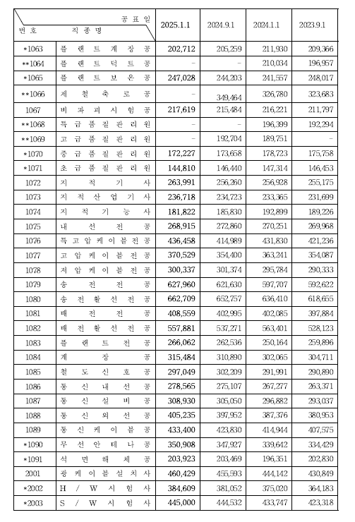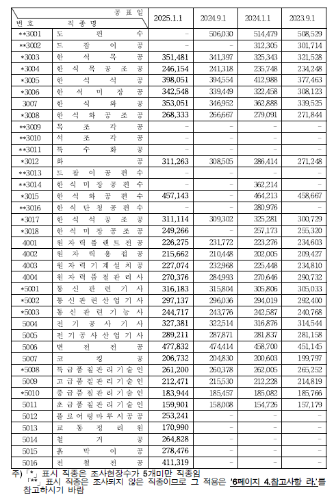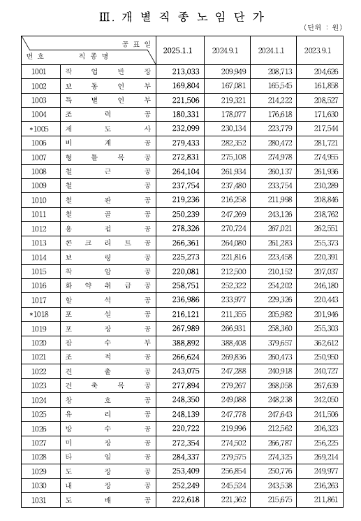 2025 정부 노임단가표 (최신)