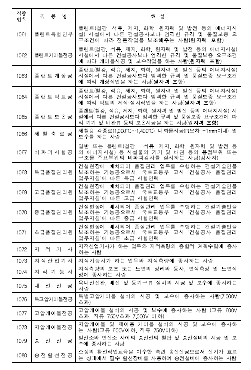 이러한 직종의 신설은 건설업계의 다양화와 전문성을 반영한 조치로 평가됩니다.